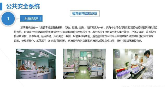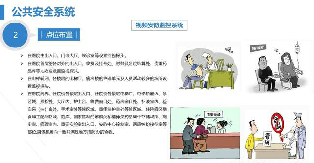 Ø在医院主出入口、门诊大厅、候诊室等设置监视探头。